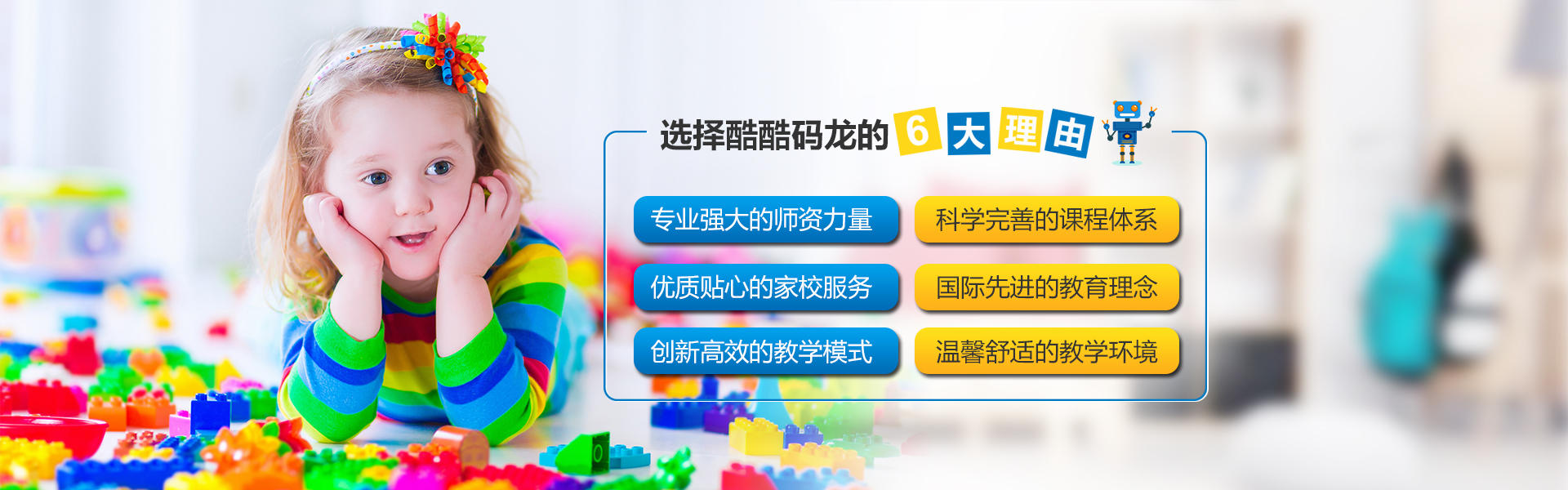 秉承“與國際接軌的機器人教育品牌”的定位,酷酷碼龍潛心研究發達國家教育體系,充分整合國內外先進的教育資源,組建了一支由業內專家組成的教育顧問團隊,建立起一整套科學完善的教學體系,形成了以樂高創意啟蒙、少兒編程、機器人競賽等課程為核心,集國內外大型科技賽事、科技主題游學、冬夏令營、創客實驗室搭建等為依托的一站式教育服務平臺,培養孩子的未來競爭力。